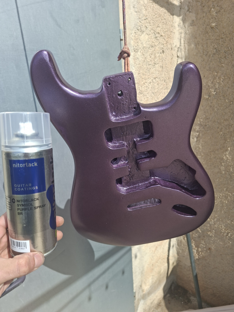 - Comenzamos a aplicar el color una vez hemos fondeado la guitarra con Nitorlack Primer.