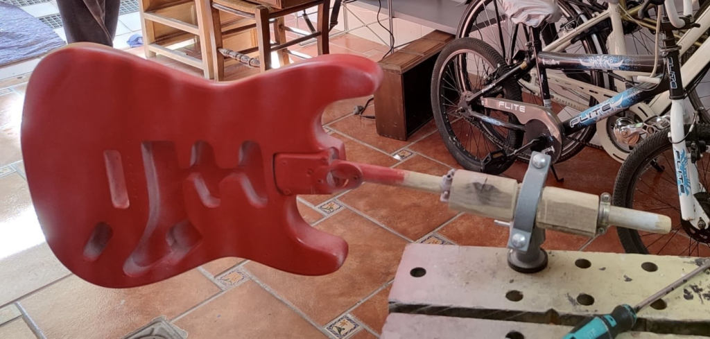 - Comenzamos a aplicar el color una vez hemos fondeado la guitarra con Nitorlack Primer.