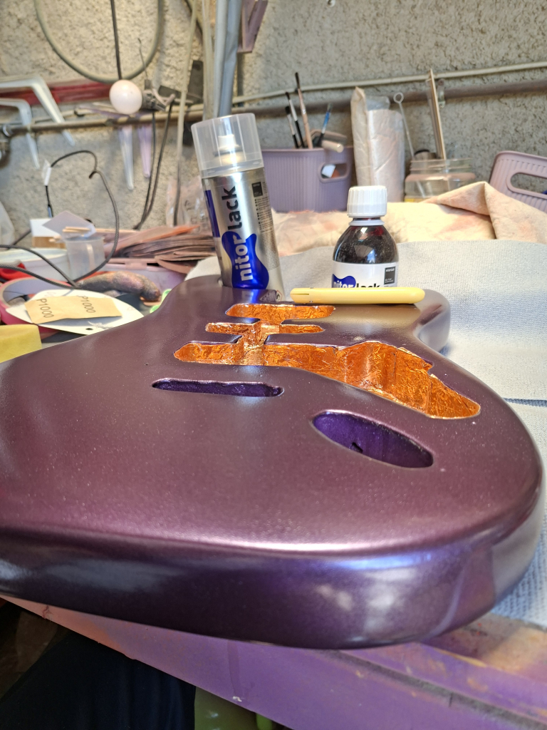 Con dos botes llega para dar nueve capas de acabado a mastil y cuerpo de guitarra